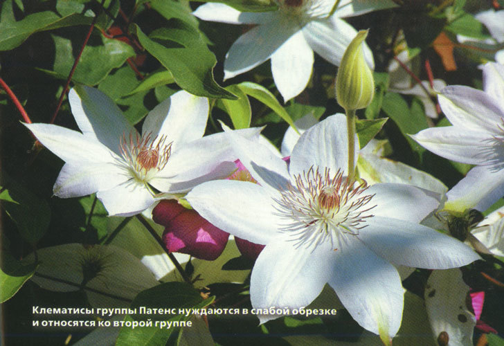 • Патенс. Ліана висотою 3 м, володіє махровими квітами, що покривають торішні гілочки.