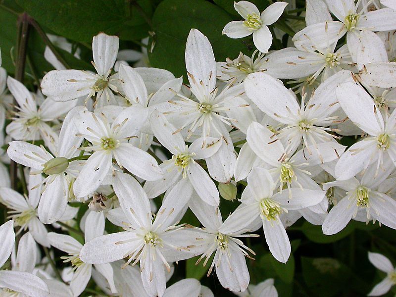 Друга назва Клематис прямій. Ліана дуже висока, розвивається стрімко. Деякі рослини даного виростають до 12 м. Листочки клематиса мають кілька невеликих листочків завдовжки максимум 8 див. Квітки білі, великі, у вигляді невеликої волоті. Бутони неймовірно пахнуть. Починають розпускатися восени, через пару років після посадки.