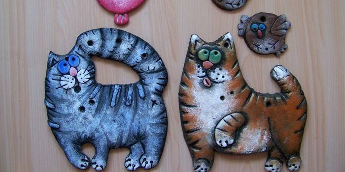 Забавно виглядають плоскі або об’ємні тварини. Яскраві фігурки стануть іграшкою, а якщо вклеїти магніт – виріб прикрасить холодильник. Такого кота, як на фото, зможе виліпити навіть початківець. Необхідно: