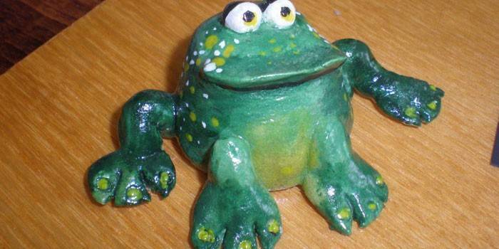 Ця тварина є в багатьох казках, тому дитячі вироби у вигляді жаби дуже популярні. Можна пройти майстер-клас, виготовивши фігурку по інструкції. Ліплення жаби починається з виготовлення кульки-тулуба. Далі необхідно: