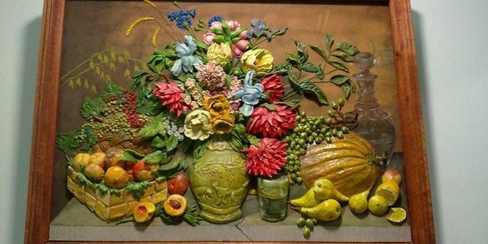 Перед початком ліплення підбирається сюжет, наприклад, осіння тема. Таке панно із солоного тіста – легкий варіант, його по силам зробити дитині. Після виготовлення робота кріпиться у рамку. Ліплення відбувається так: