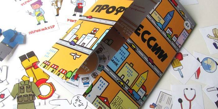 Спрямованість цієї інтерактивної книжки-папки – загальний екскурс по існуючих професій. Тут важливо пояснити дитині в чому полягає принцип роботи людини певної спеціальності, допомогти зорієнтуватися у світі професій і зрозуміти, хто ким хоче стати. Такий лэпбук може містити наступні навчальні розділи і допоміжні елементи: