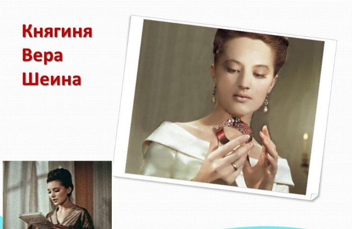- Зовнішність Віри Миколаївни викликала захоплення у оточуючих. Дівчина перебуває одружена з князем Шеїн Василем Львовичем. Проте в цьому союзі вона виступає насамперед як друга і помічника для свого чоловіка.