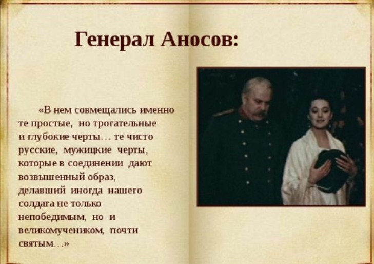 Єдиний персонаж, що надає важливе значення любові в житті кожної людини, генерал Аносов. Він допомагає княгині інакше поглянути на залицяння невідомого чиновника, стає для неї духовним учителем.