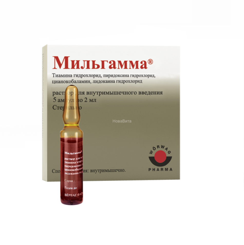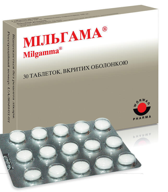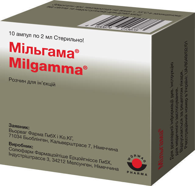 Мільгамма являє собою комплексне засіб, до якого входять вітаміни групи В. Випуск проходить в таблетированном вигляді і у вигляді розчину, призначеного для ін’єкцій. Призначений для лікування неврологічних захворювань. Лікувальний ефект досягається завдяки дії входять до складу препарату речовин на запалення, і забезпечення зниження больових відчуттів. Застосовується за індивідуальним призначенням лікаря.