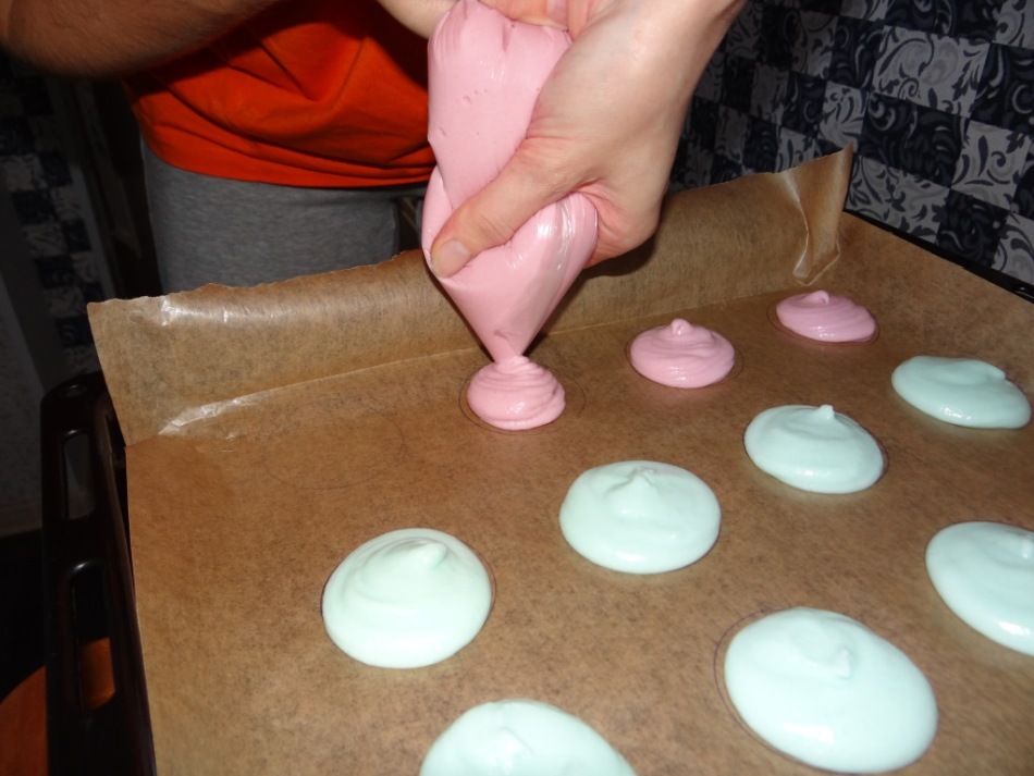 Намагайтеся кожну хвилину перевіряти готовність макарун – вони не повинні прогинатися. Готові тістечка тверді.
