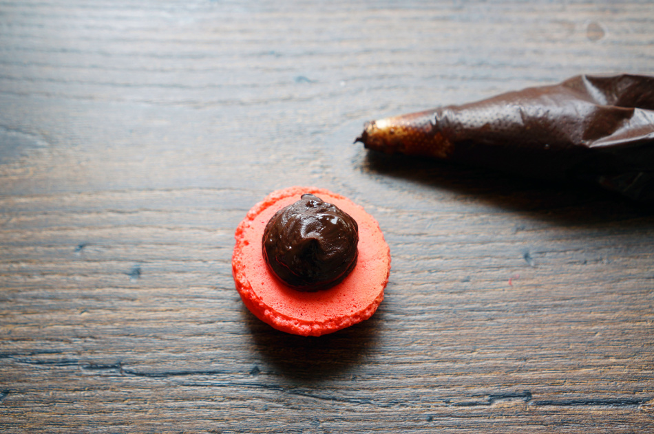 Деякі кулінари люблять начиняти макаруни ганашем – кремом на основі шоколаду, вершкового масла, вершків або молока. Врахуйте, що, якщо ви хочете створити ганаш з щільною структурою, додайте більше шоколаду. При охолодженні він стає матовим, тому розігрійте при необхідності.