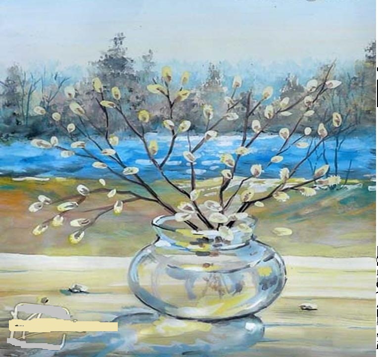 - Як намалювати гілочку верби гуашшю, фарбами?
