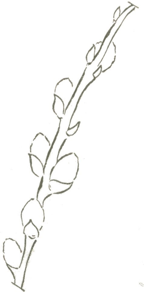 - намалюйте пучок гілок верби. Це криві лінії, кінці яких злегка загорнуті в різні сторони,
