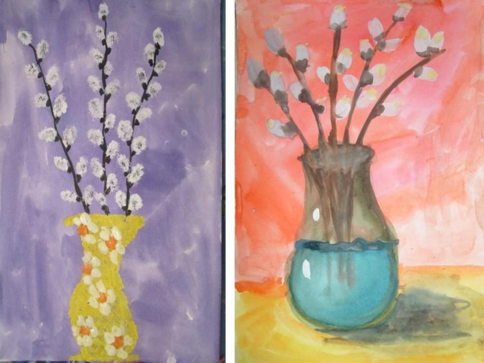 - якщо ви плануєте розташування вази з вербою не близько, то пухнасті кінці квітам не малюйте,