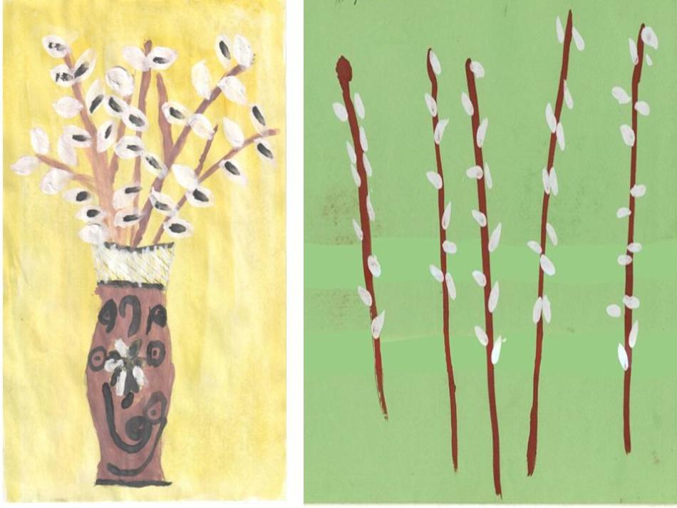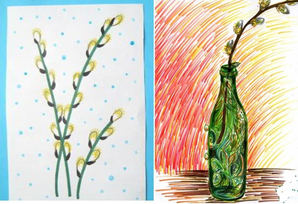 Діти із задоволенням малюють гілочки верби в садах і школах, готують весняні листівки мамам і до Великодня.