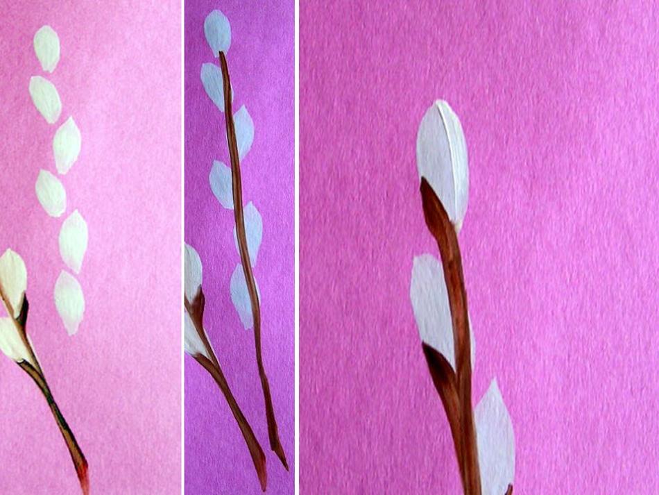 Гілку верби ще легше зобразити гуашшю без ескізу: