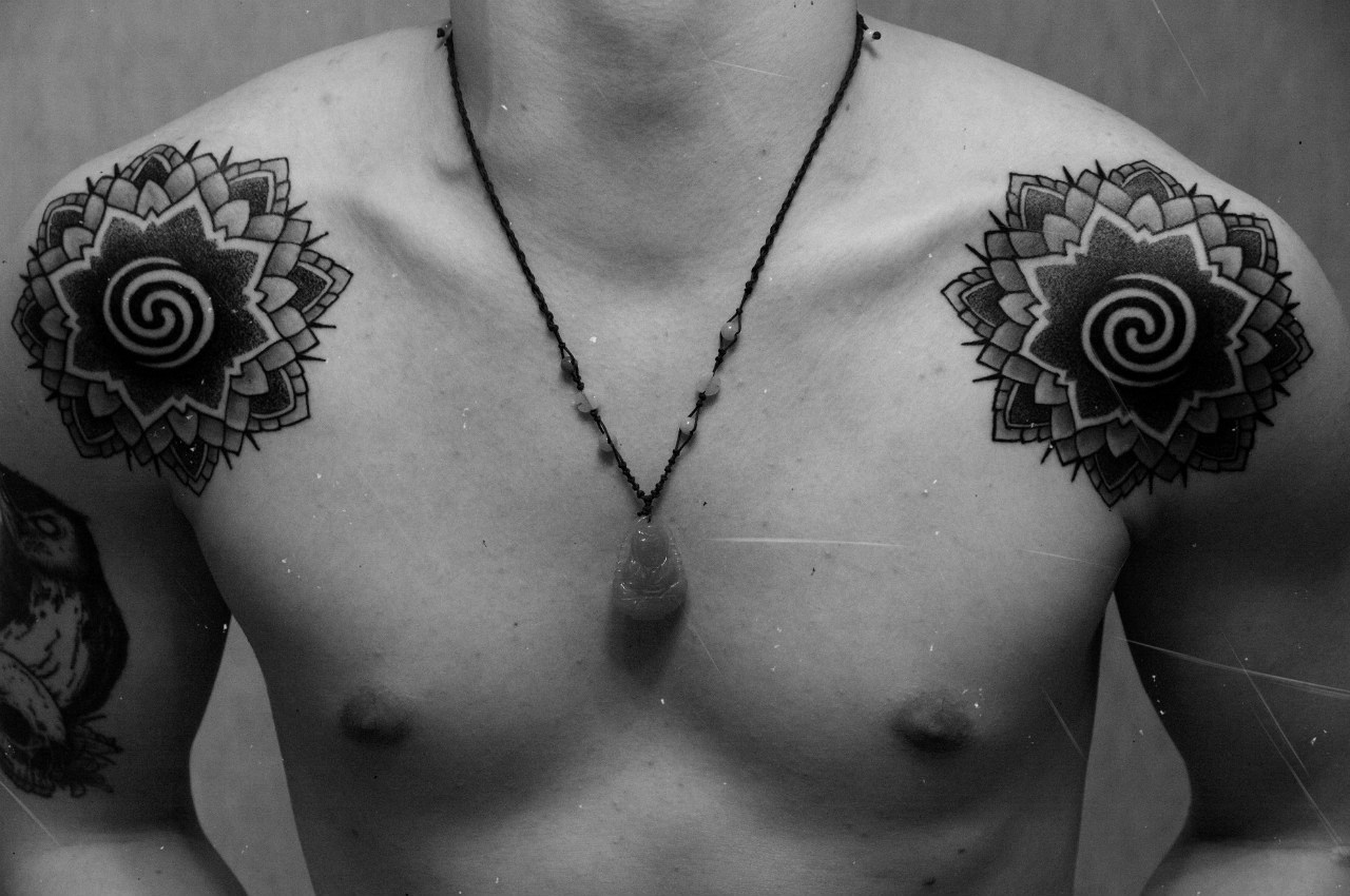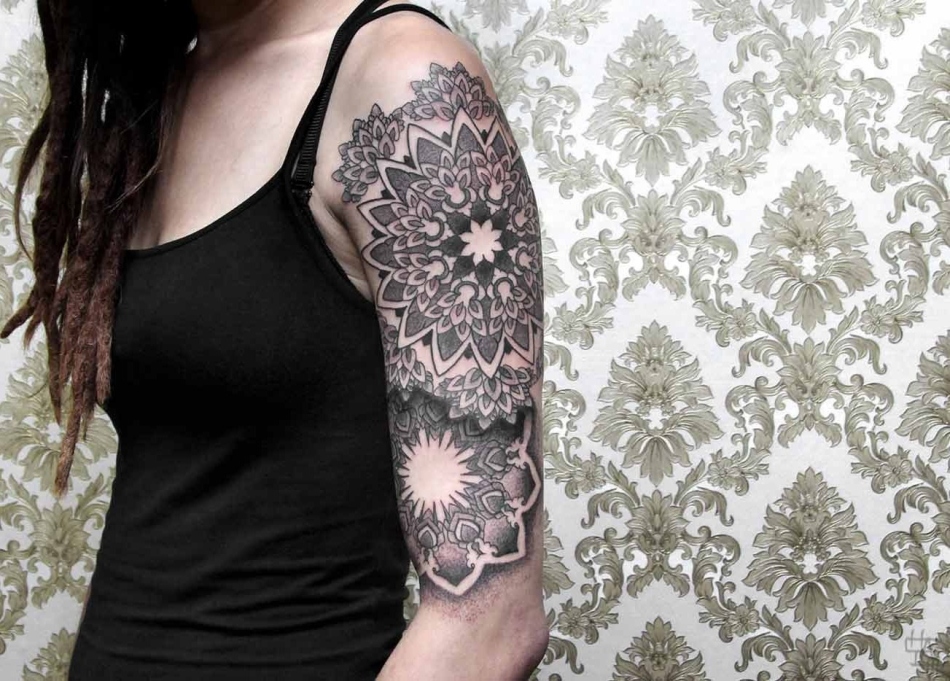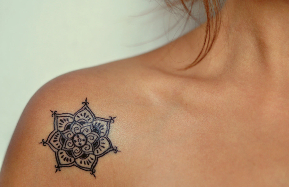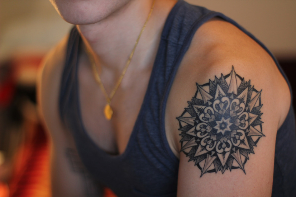 Дуже красиво мандала, як і будь-яка татуювання, виглядає на плечі. Не важливо де ви вирішите розташувати своє татуювання — вона завжди буде виглядати виграшно.