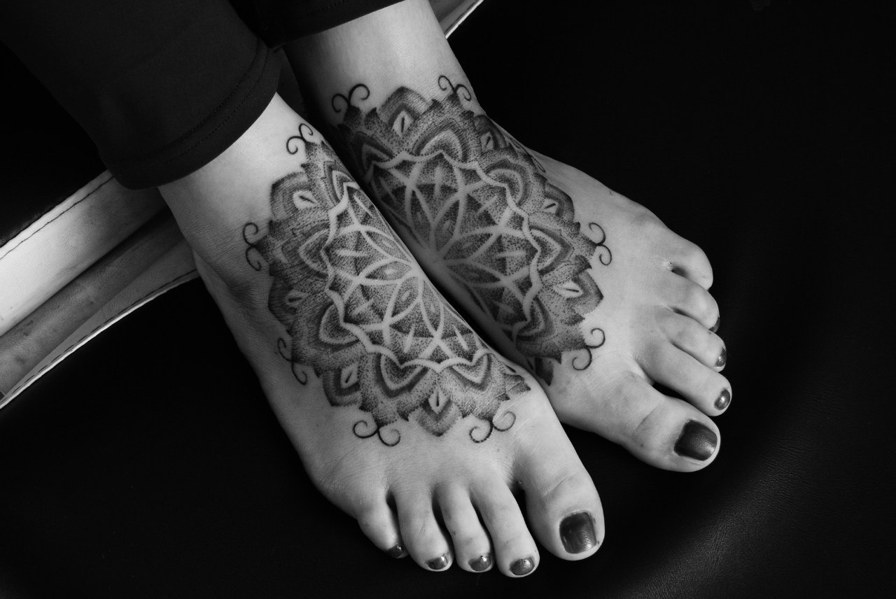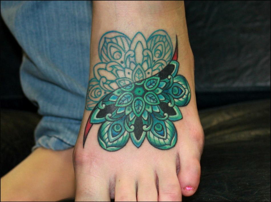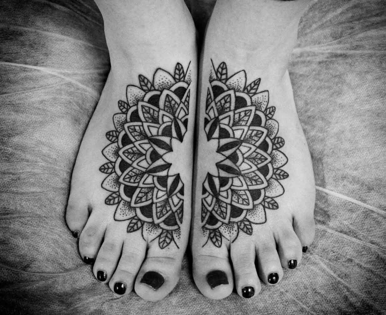 Мандала на ступні — це незвичайне місце для розташування татуювання, але тим не менше, воно має в собі глибокий зміст. Такий малюнок зачіпає людську енергетичну точку і тому дуже значимо.