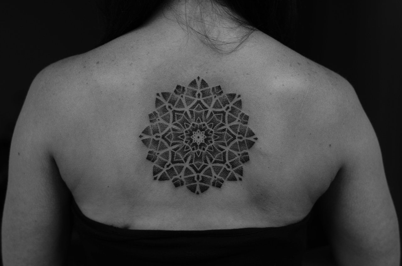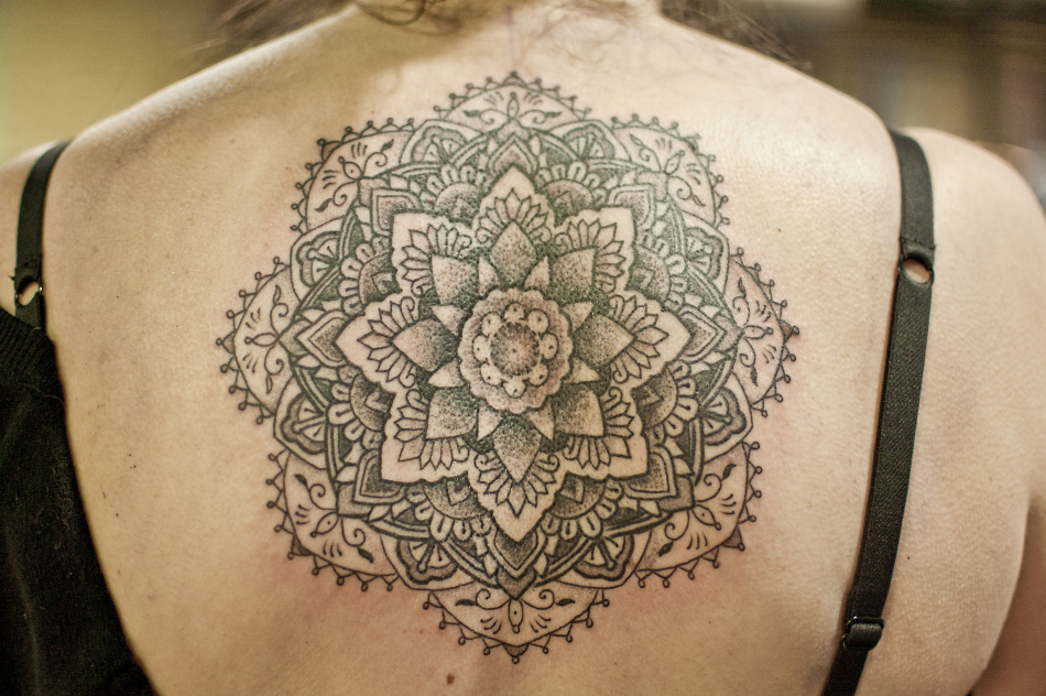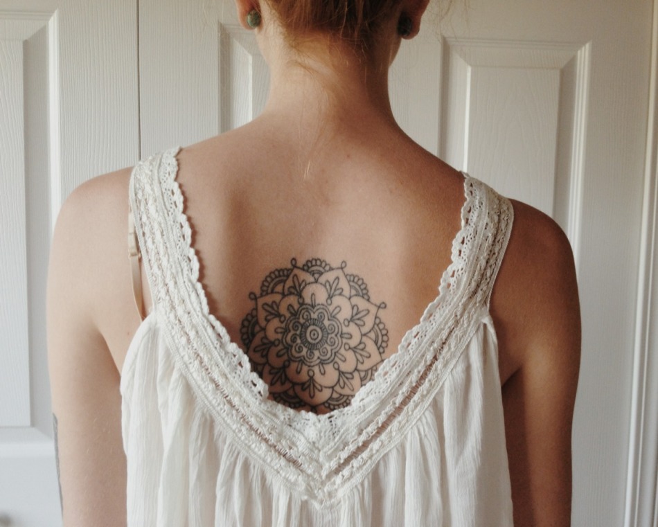 Найкраще місце для тута мандала — на спині. Ця частина тіла дозволяє вибрати для себе ескіз будь-якого розміру і форми. Розмістити мандалу можна між лопаток, на лапатке, на попереку. У будь-якому випадку, малюнок вийде рівним, гарним і привабливим.