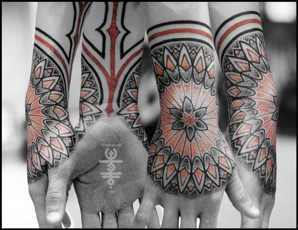 Татуювання мандала на руці завжди дуже ефектно виглядає. Вона завжди кидається в очі оточуючим і привертає до себе увагу. Крім того, ви так само регулярно помічаєте і спостерігаєте її, що дозволяє вам постійно зациклюватися на її значенні.