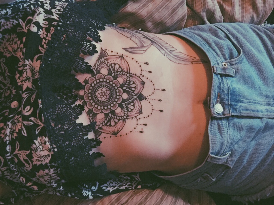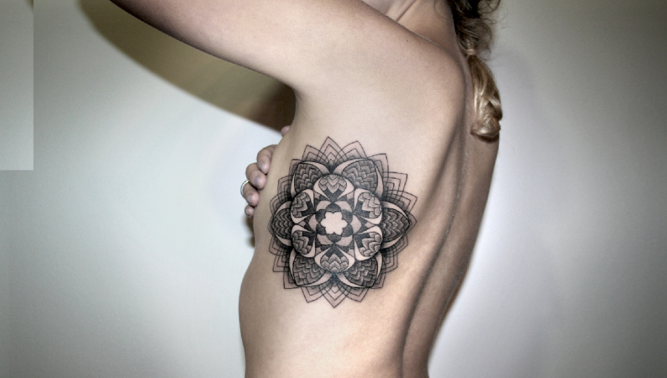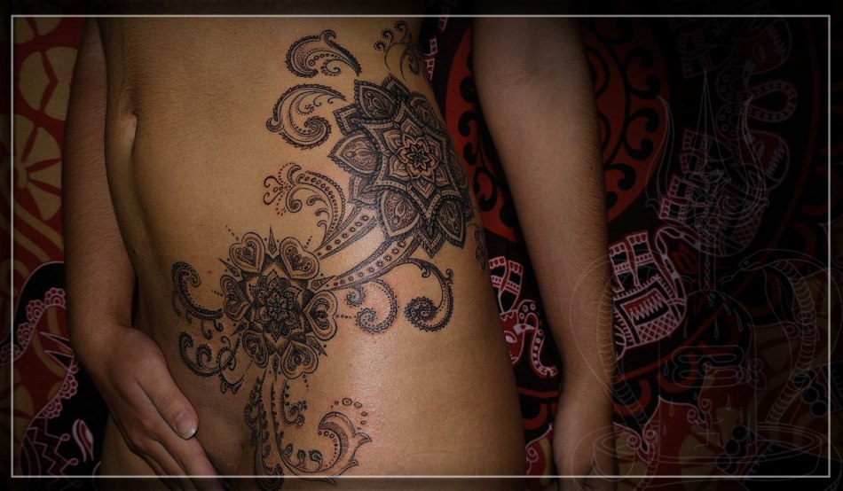 Мандала на ребрах завжди виглядає дуже жіночно. В основному, вона завжди прихована від стороннього погляду і тому головне її значення — охороняти свого володаря.