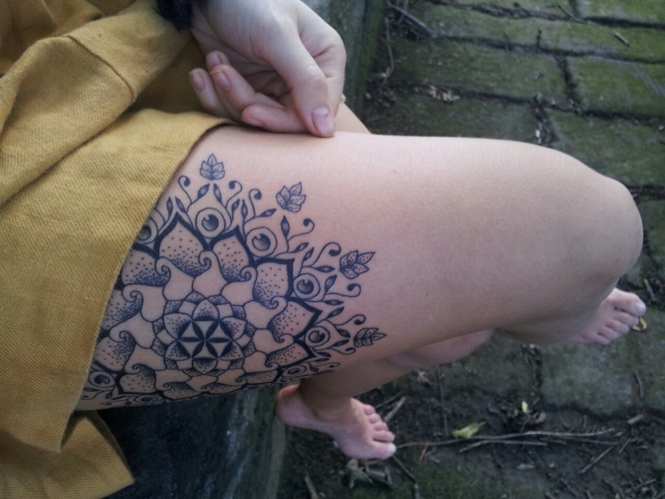 Мандала на стегні — жіноче тату, що крім того, що дарує прекрасній половині людства позитивну енергетику і є її окрасою.