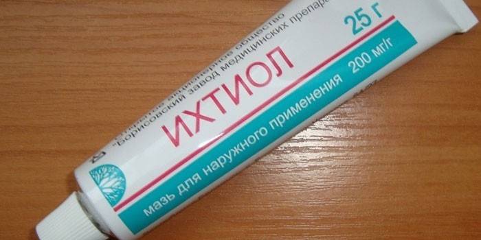- ихтиоловую мазь з сірчаною кислотою в хімічному складі;