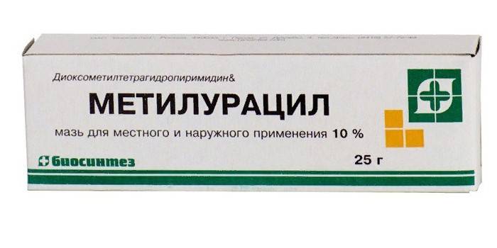 - Метилурацил. Цей компонент сприяє загоєнню тріщин в задньому проході, знімає набряк, біль, зміцнює місцевий імунітет, знімає хронічний свербіж.