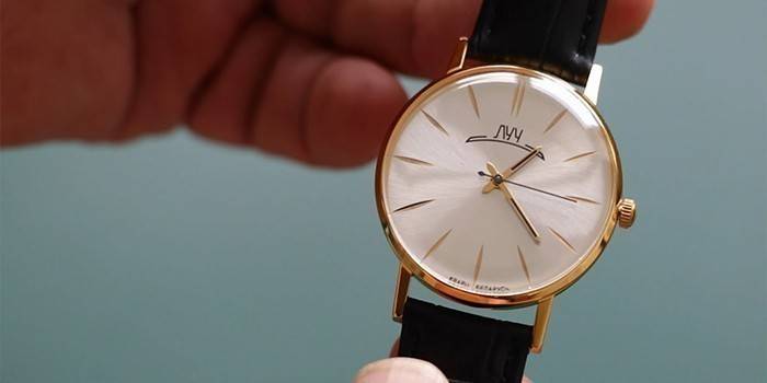 - характеристики: механічні, корпус із сталі з позолотою, білий циферблат, мінеральне скло;