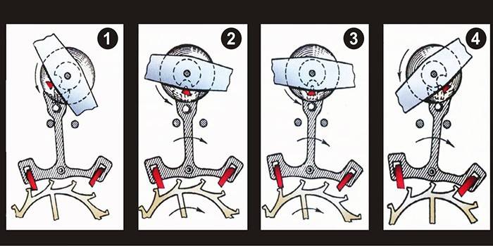 - Двигун отримує заряд енергії. Це відбувається, коли людина до упору закручує коронку.