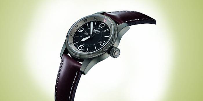 - характеристики: з автоподзаводом, дизайн в авіаційній тематиці, корпус із сталі з PVD покриттям, циферблат чорний, на шкіряному ремінці червоно-коричневого кольору, вологозахист 30 WR, стрілки і мітки люмінесцентні, скло опукле сапфірове з антибактеріальним покриттям всередині, показують дату, ззаду загвинчується кришка з мінеральним склом;