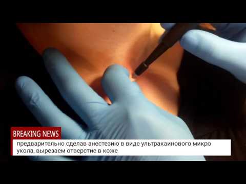 - Скальпелем проводитися неглибокий надріз, або шкіра проколюється спеціальною голкою, потім під шаром епідермісу майстер розширює «кишеню», куди відразу ж вставляє підстава прикраси.