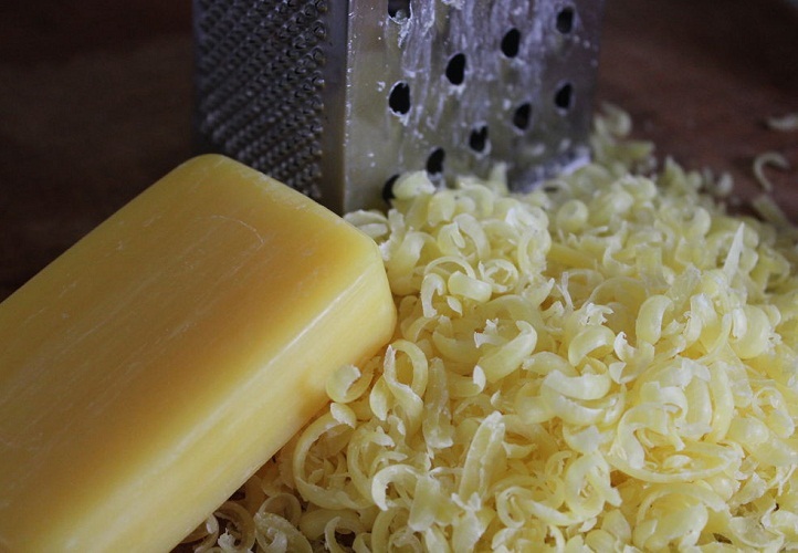 - На тертці натираємо мило і заливаємо водою. Звичайно, бабусин метод передбачає використання водяній лазні. В такому випадку, стружку потрібно спочатку трохи розтопити, а тільки після влити воду.