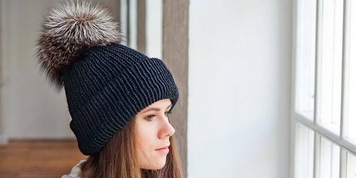 - Об’ємні помпони добре виглядають на моделях у формі шолома, шкарпетки. Цей елемент буває різної величини, іноді використовують відразу три помпона в моделі шапочки-шоломі.