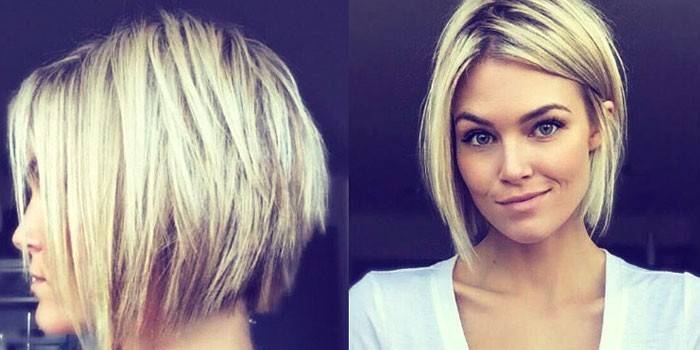 За основу для асиметричних жіночих зачісок на короткій довжині беруться такі популярні стрижки, як боб і каре. Асиметрія проявляється в тому, що одну з бічних пасм залишають довгою, а іншу – короткою або зовсім збривають до декількох міліметрів довжини. Така зачіска добре виглядає як на прямих, так і на хвилястих волоссі. Можна поекспериментувати з оформленням кінчиків, наприклад, використовувати техніку градуювання.