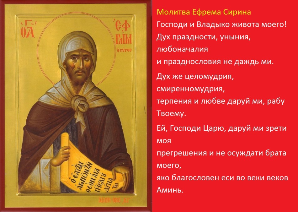 • Молитву Єфрема Сирин, що звільняє від всяких недуг, читати потрібно щодня включаючи і сиропусний тиждень, крім суботи та неділі.