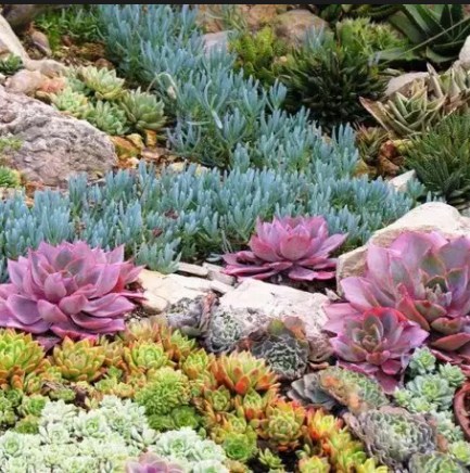 Це рослина дуже гармонійно поєднується з природними каменями, особливо якщо їх прикрасити. Вони ідеально вписуються на величезних масивах або на передньому плані.