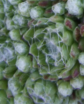 - Паутинистое молодило відрізняється маленькими відростками завширшки всього два сантиметри. Таку назву воно отримало з-за безлічі дрібних ворсинок в серединці, які нагадують павутину.