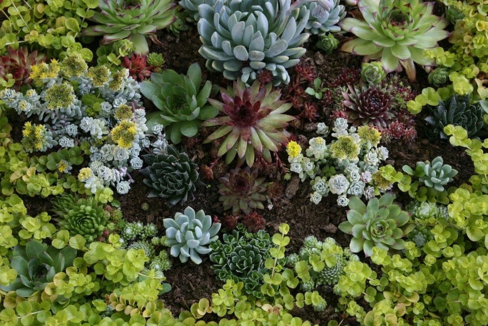 Саме тому, дуже давно це рослина висаджували на дахах будинків, це виглядало дуже незвично, але в той же час екологічно. Квітки різної форми, колірної гами та висоти.