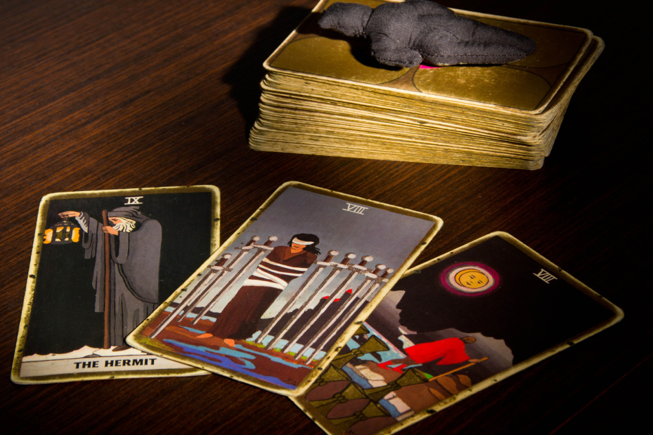 - Сімка мечів. Правильне положення: Дана карта вказує, що вас обдурять. Це може бути обман на роботі або крадіжка. Можливо, ваш коханий не чесний з вами. Якщо ви відчуваєте, що хтось вас обманює, перевірити цей факт. Карта говорить, що ви самі неуважні. З-за цього шахраям простіше закрутити вам голову. Перевернуте положення: Хтось, хто обдурив вас, зізнається у скоєному. Грабіжник буде знайдений. Якщо питання стосувалося подружньої зради, то і це скоро з’ясується. «Таємниця стає дійсністю» — сенс перевернутої семеруки мечів