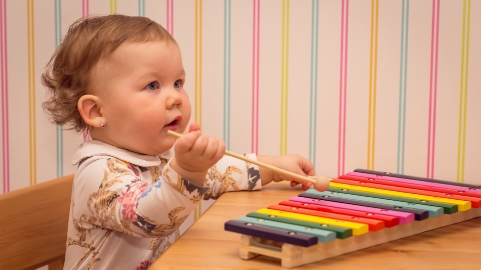 - Дитячі іграшки, наприклад клависин, можна також вважати елементом музичного розвитку. Нехай ще хаотично, але малюк вже намагається витягувати з нього звуки. Головне не заважати йому у творчості