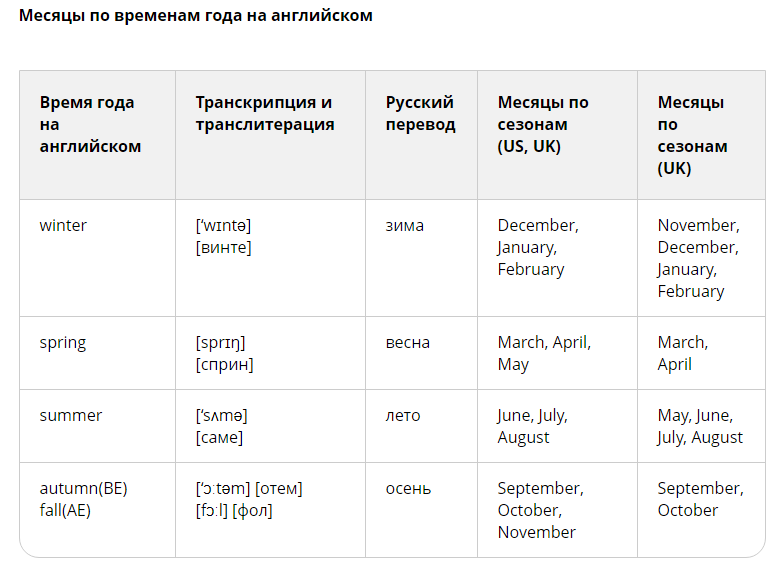 - Пори року з місяцями англійською — як вимовляються?