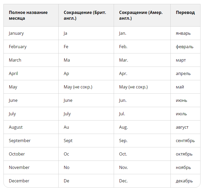 - Як скорочуються місяця англійською?
