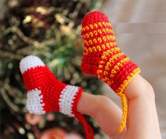 Декоративні новорічні шкарпетки гачком