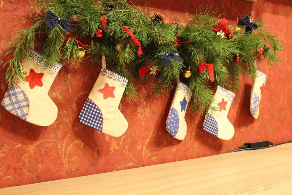 Ідеї декору будинку за допомогою новорічних шкарпеток: