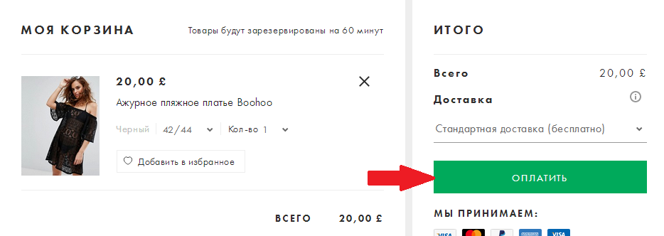 - Перейдіть до оформлення замовлення, активувавши зелену кнопку Оплатити.