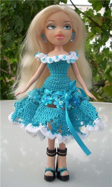 - Одяг для ляльок гачком: бальна сукня