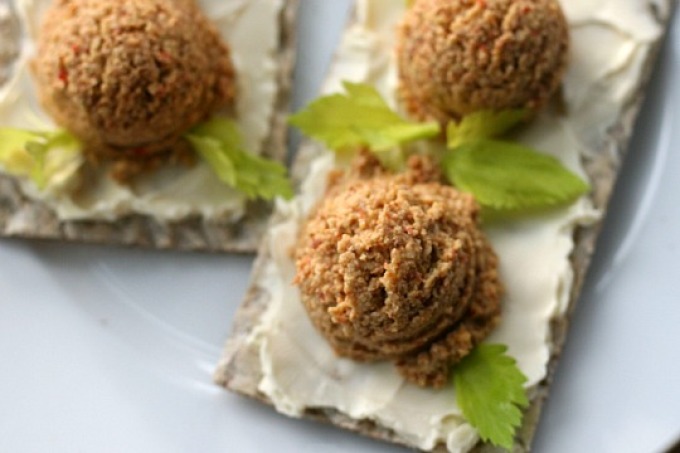 - Дайте хлібу охолонути, а потім намажте його перебитим тунцем і прикрасьте все тонким шаром червоної ікри.