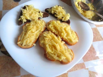 - Ще гарячі грінки натріть часником і відставте в сторону остигати