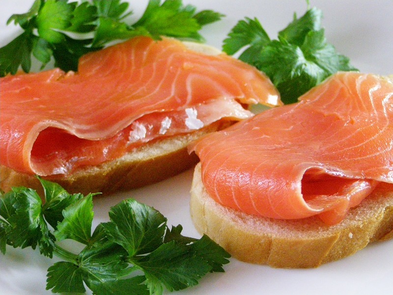 - Беремо хліб, викладаємо на нього рибку, а зверху на неї кладуть часточки лимона