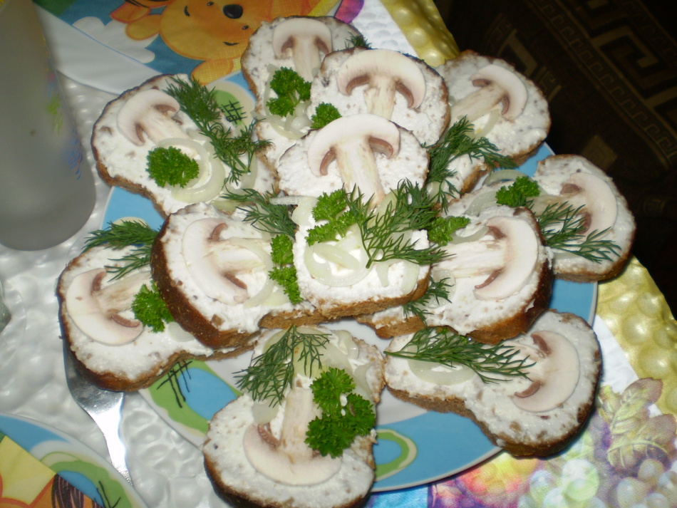 Печериці досить універсальний продукт, здатний добре поєднуватися з абсолютно всіма продуктами, тому немає нічого дивного в тому, що господині так широко використовують їх для приготування бутербродів.