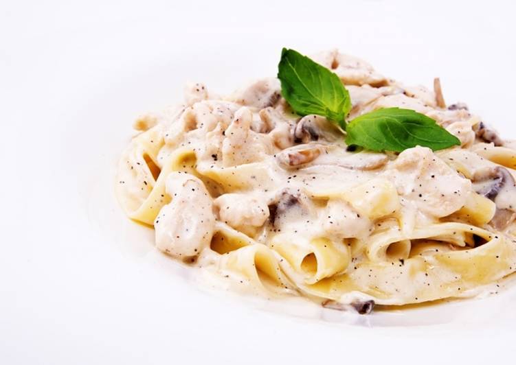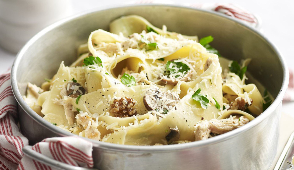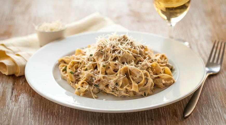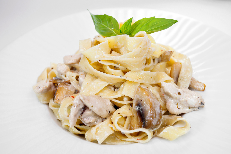 Паста у вершковому соусі з куркою і грибами: рецепт