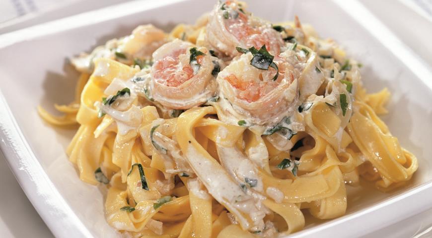 - Паста у вершковому соусі з куркою і креветками: рецепт