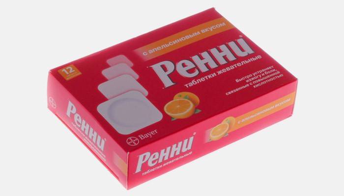 • Таблетки Ренні, які розсмоктуються в роті. Таблетки не впливають на плід внаслідок відсутності всмоктування в кров, не приносять побічних дій.